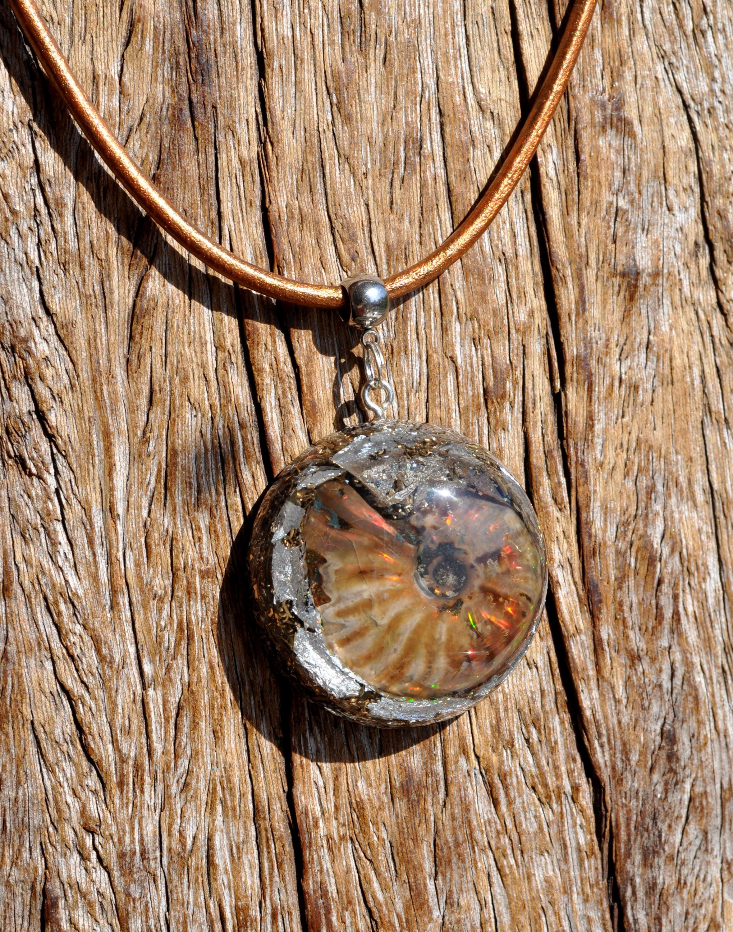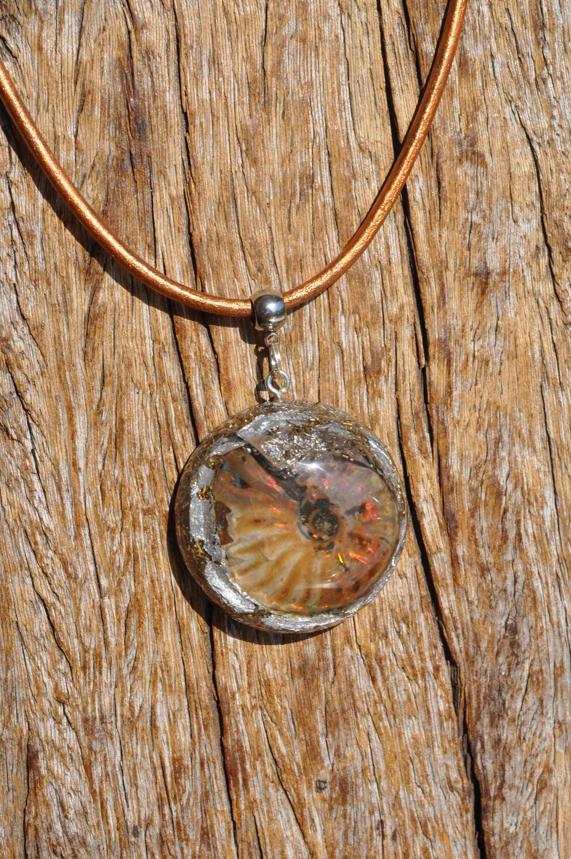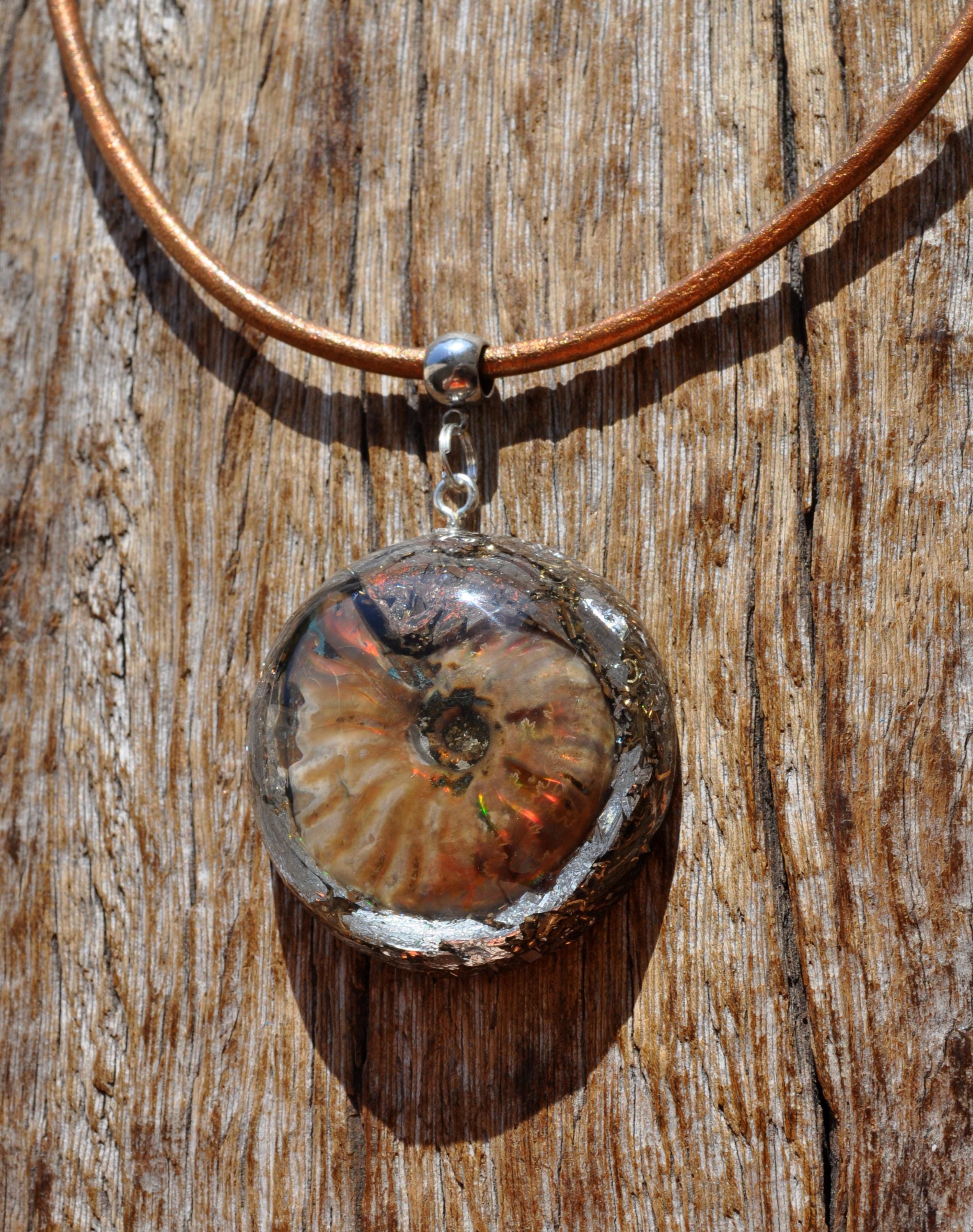 EMF Orgonite Pendant with Opalized Ammonite