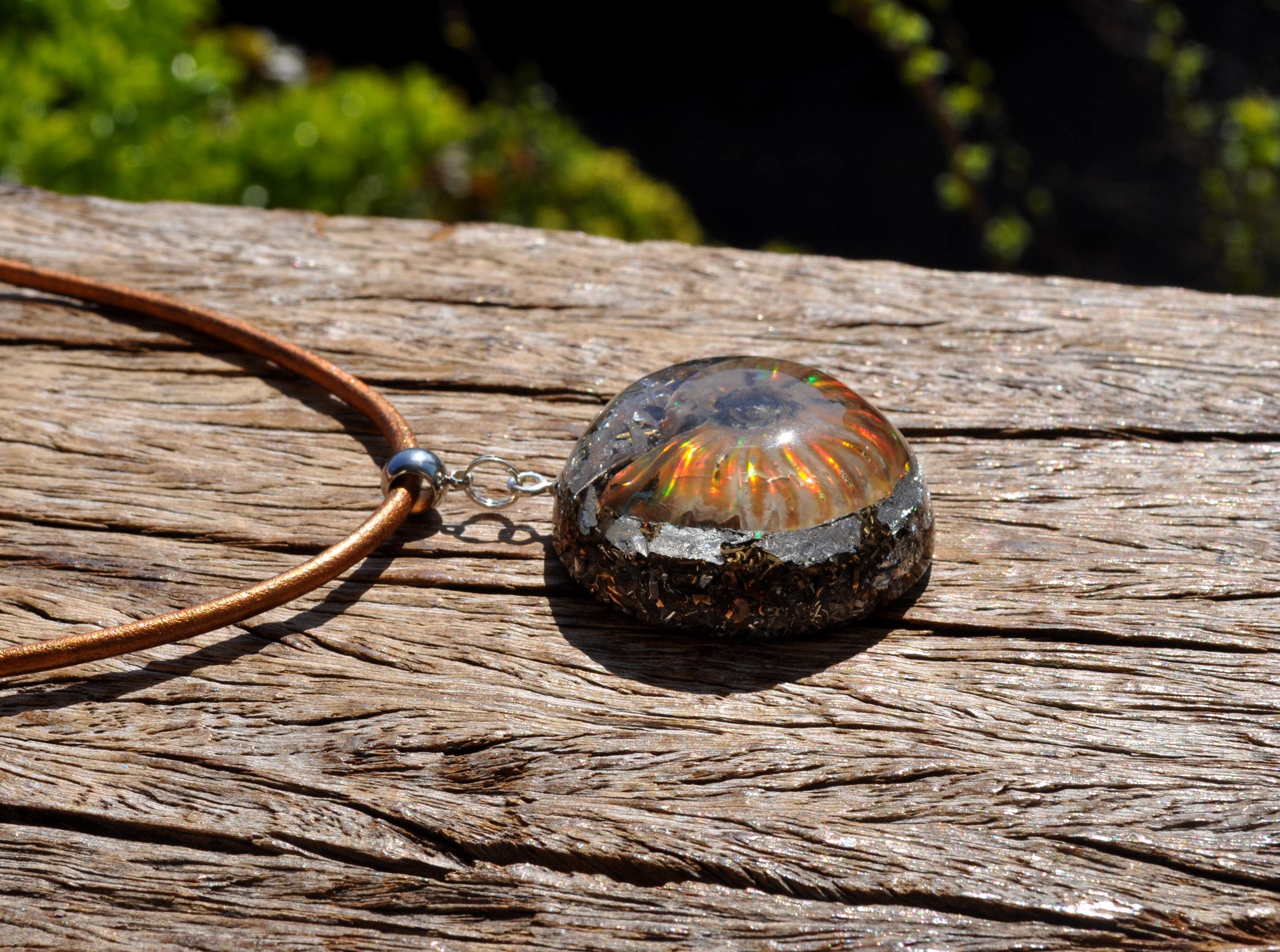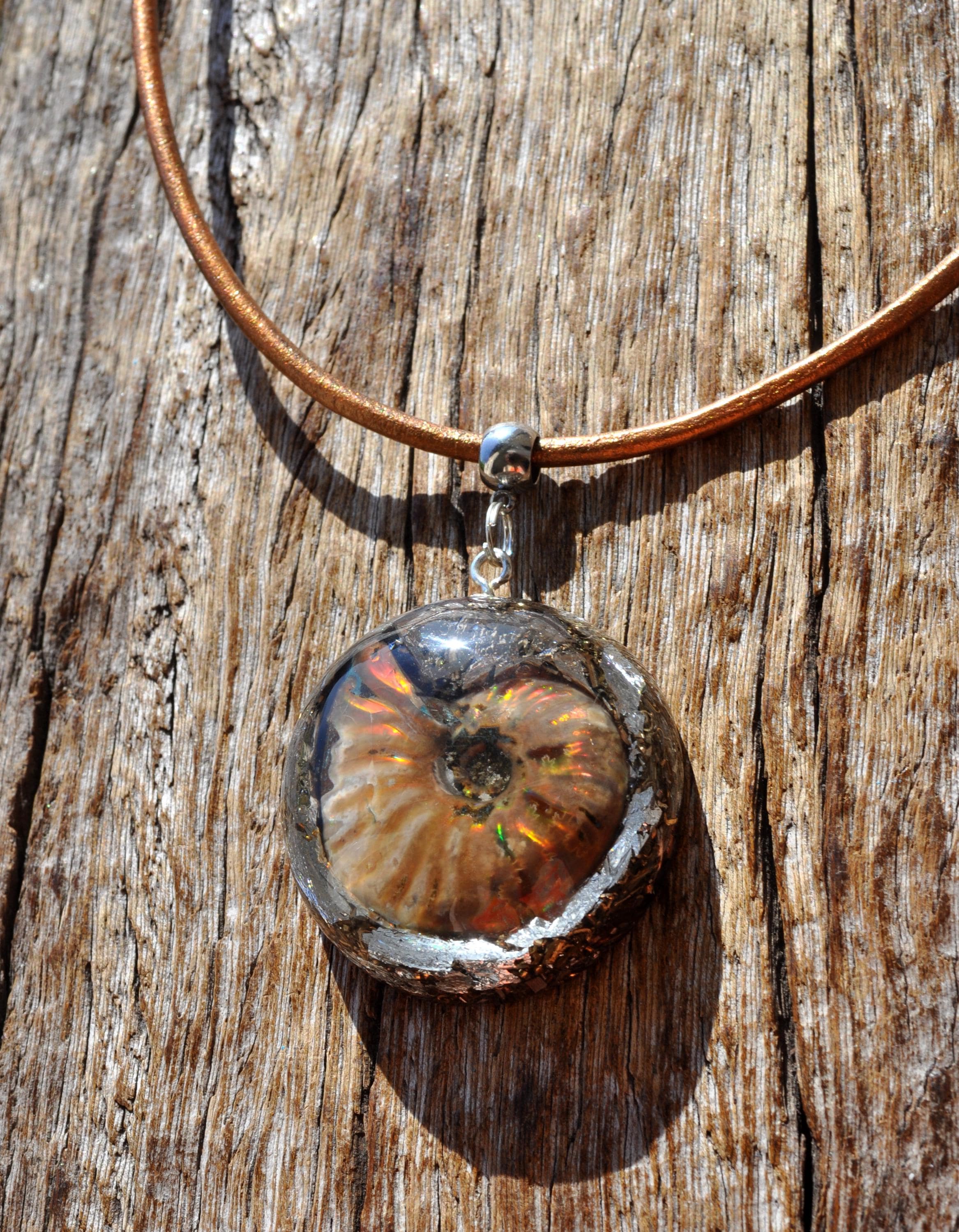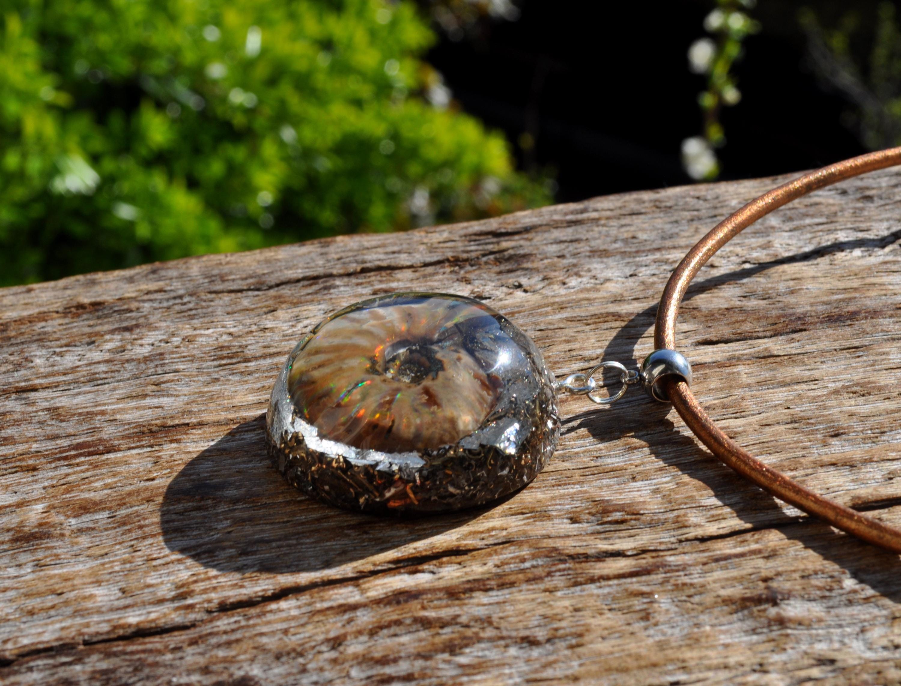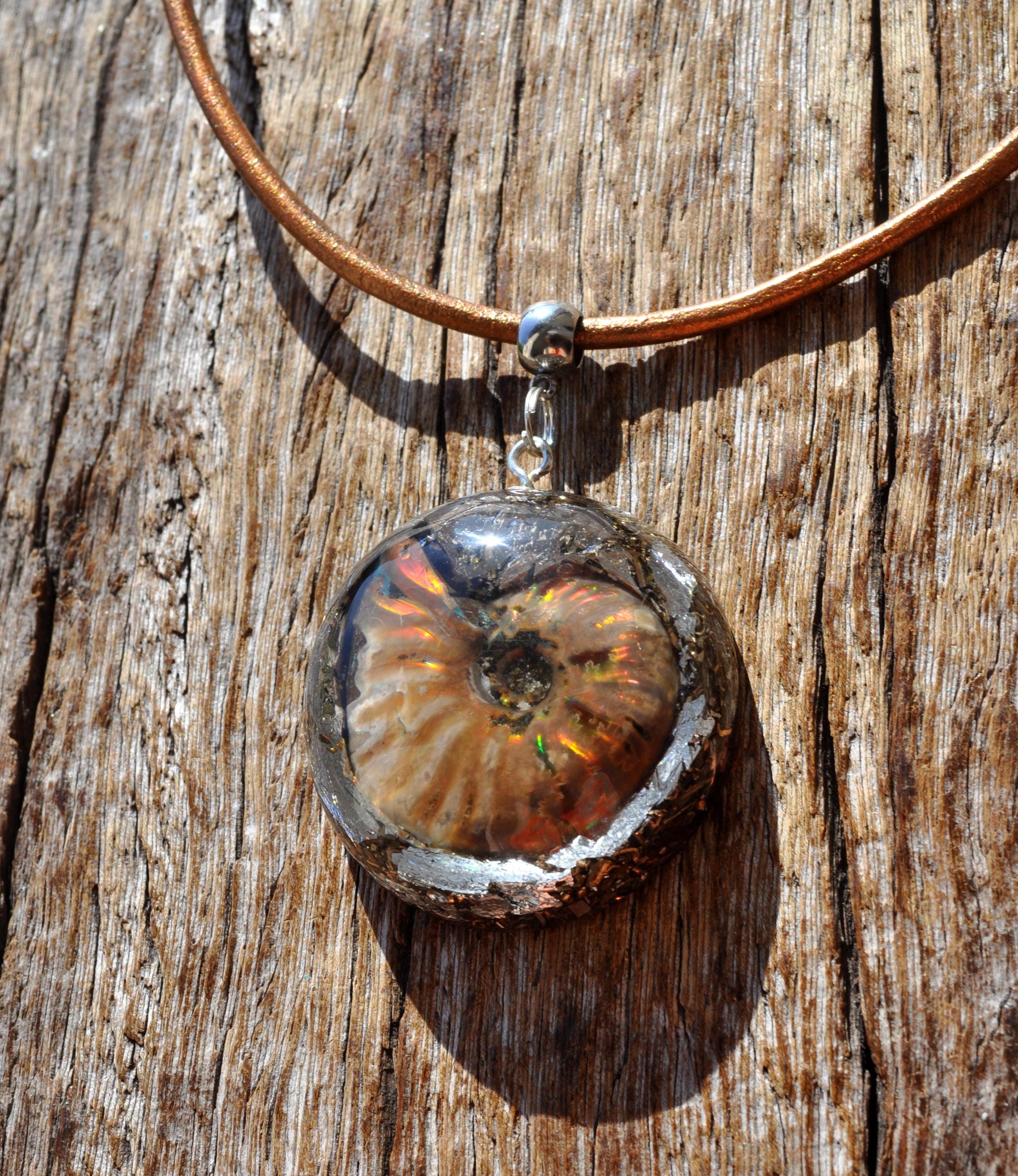 EMF Orgonite Pendant with Opalized Ammonite