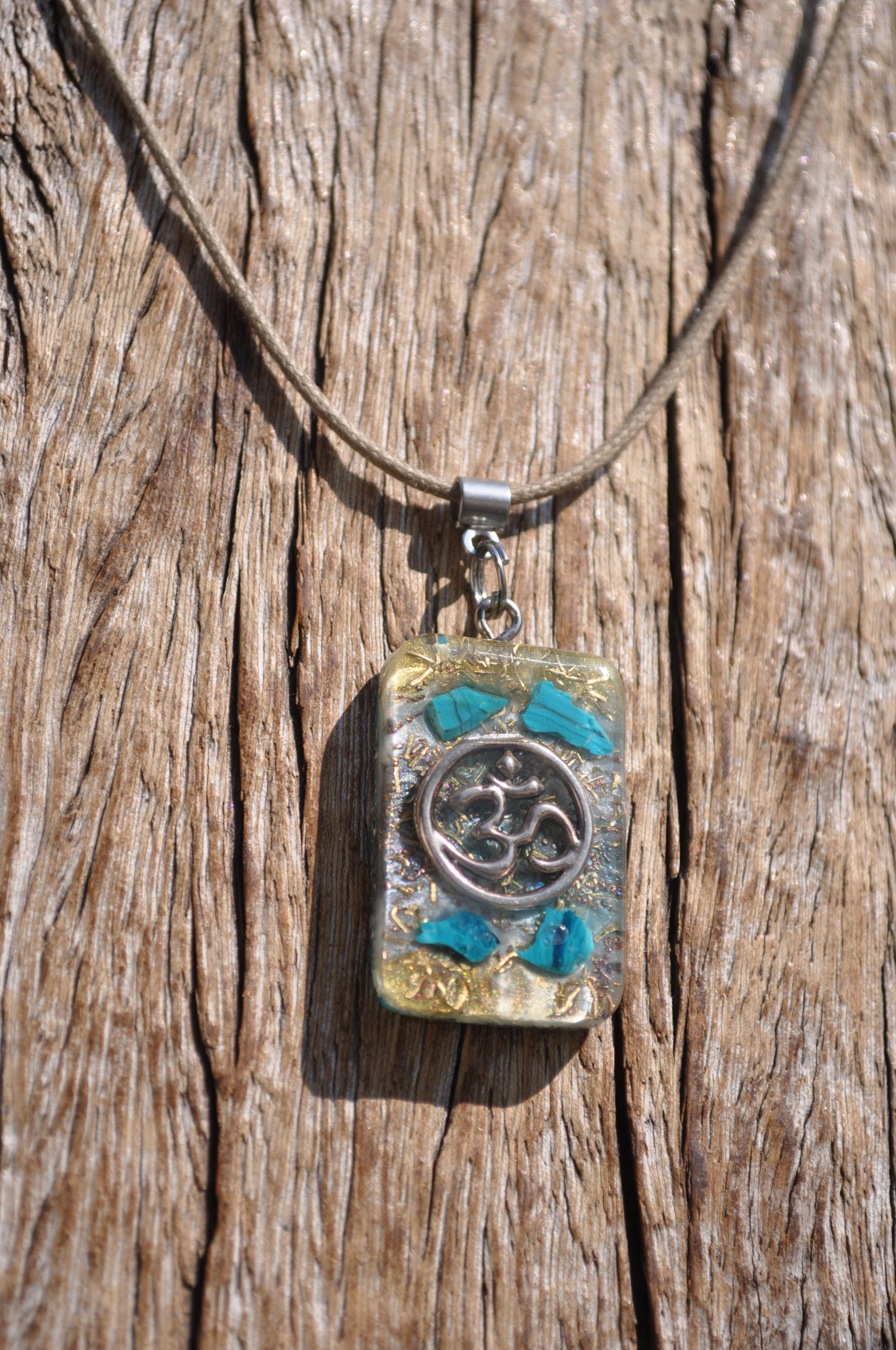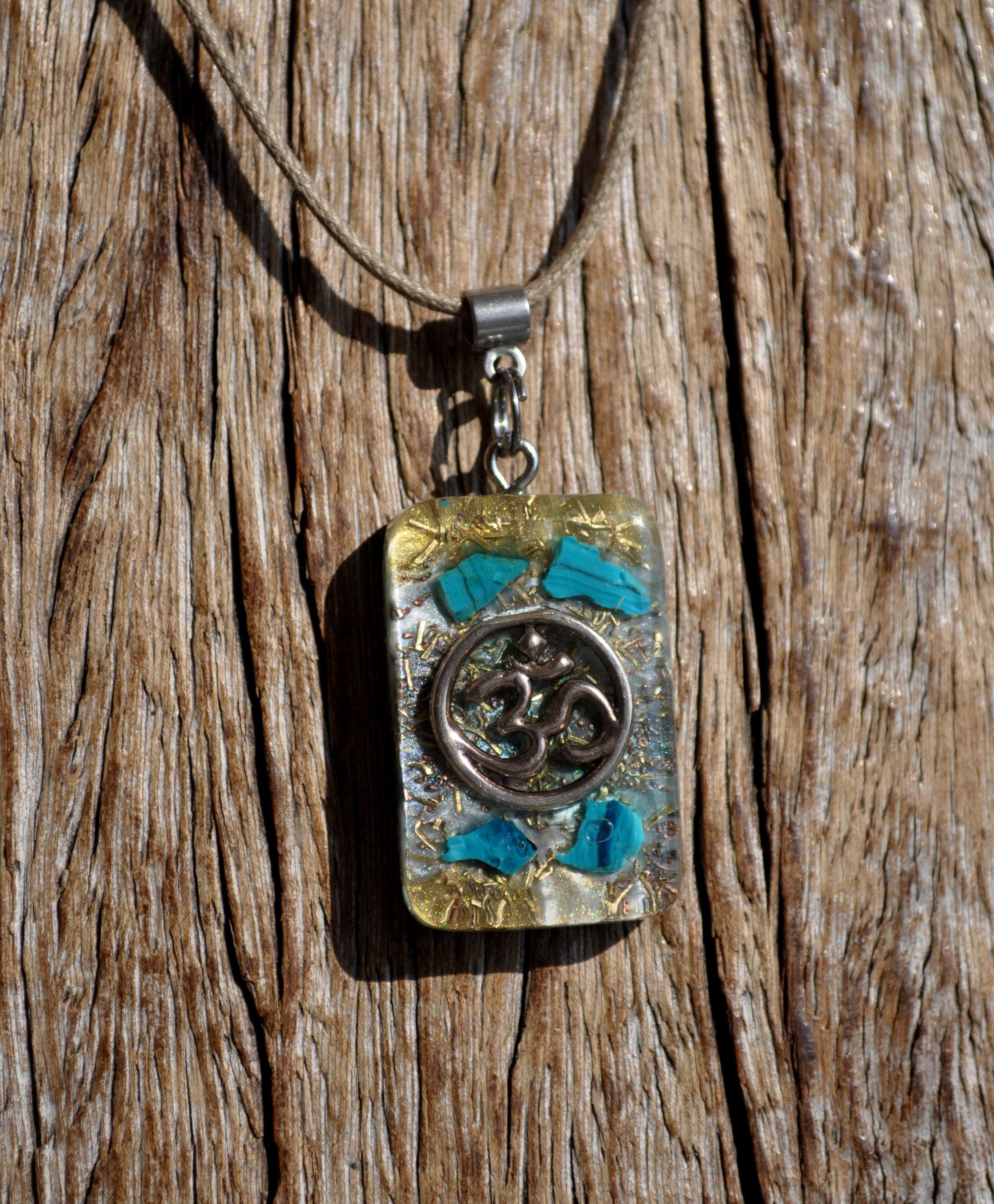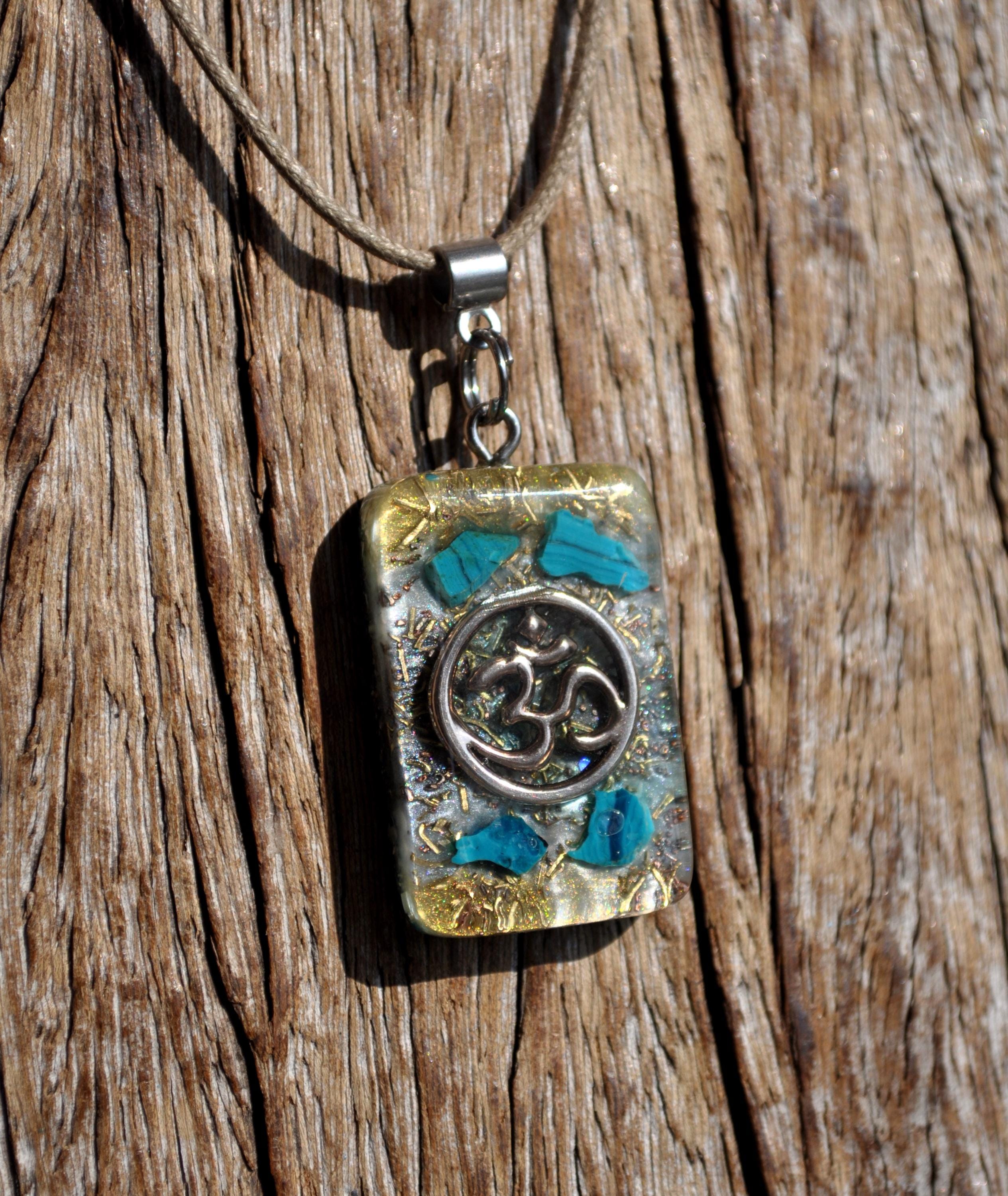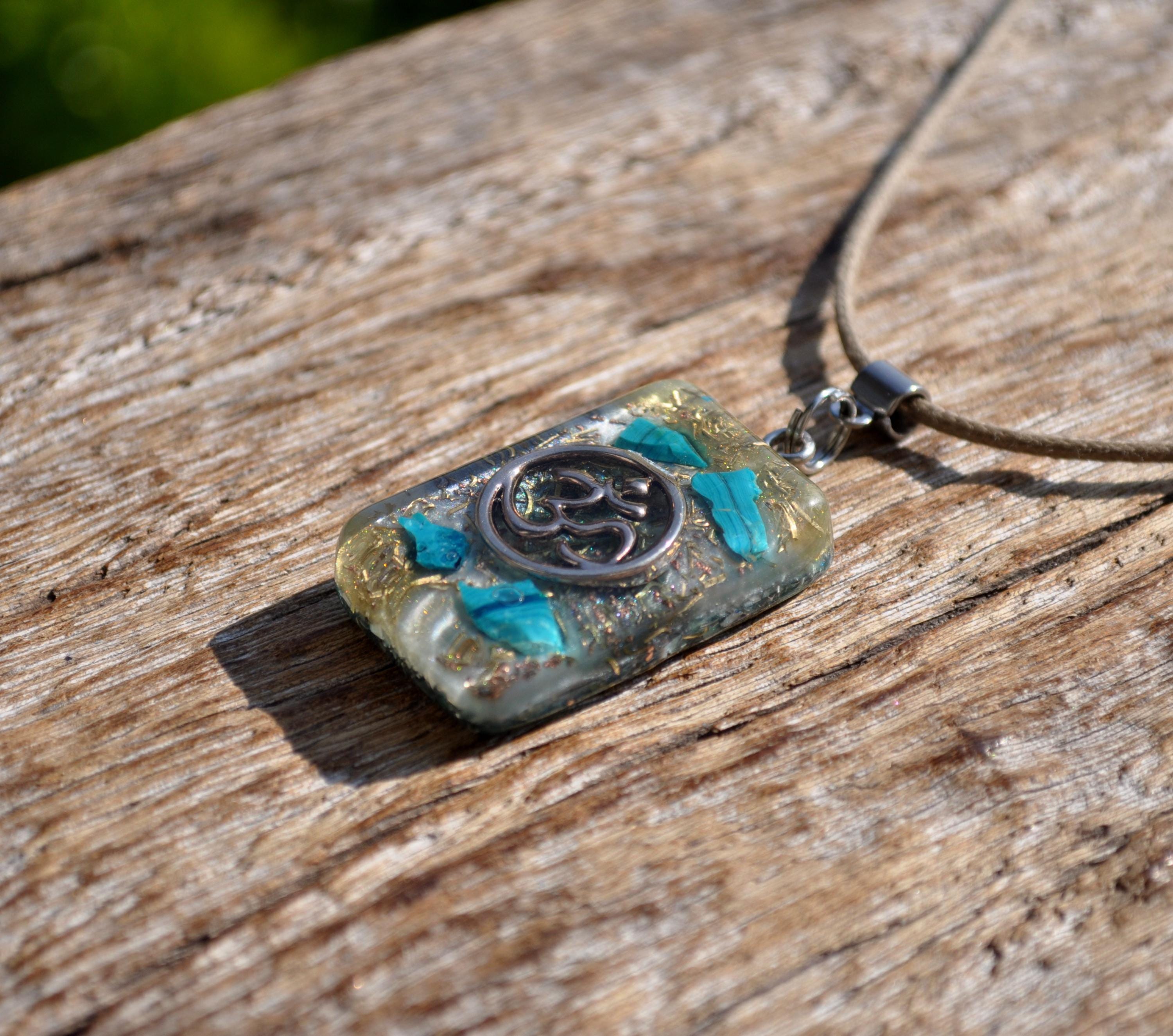 Orgonite® Pendant with AUM Symbol – Chrysocolla, Copper & Crystals (3.6 cm)