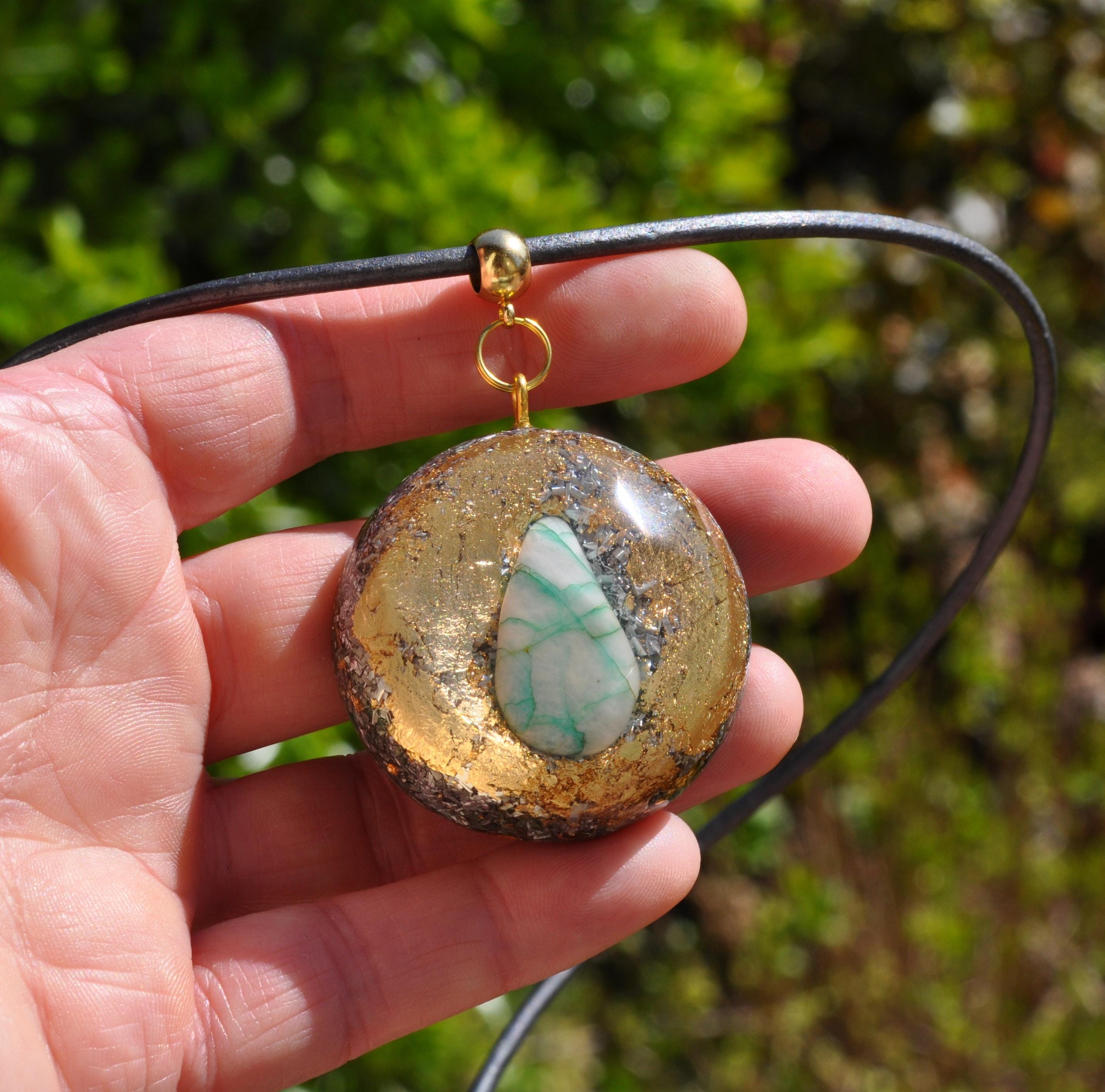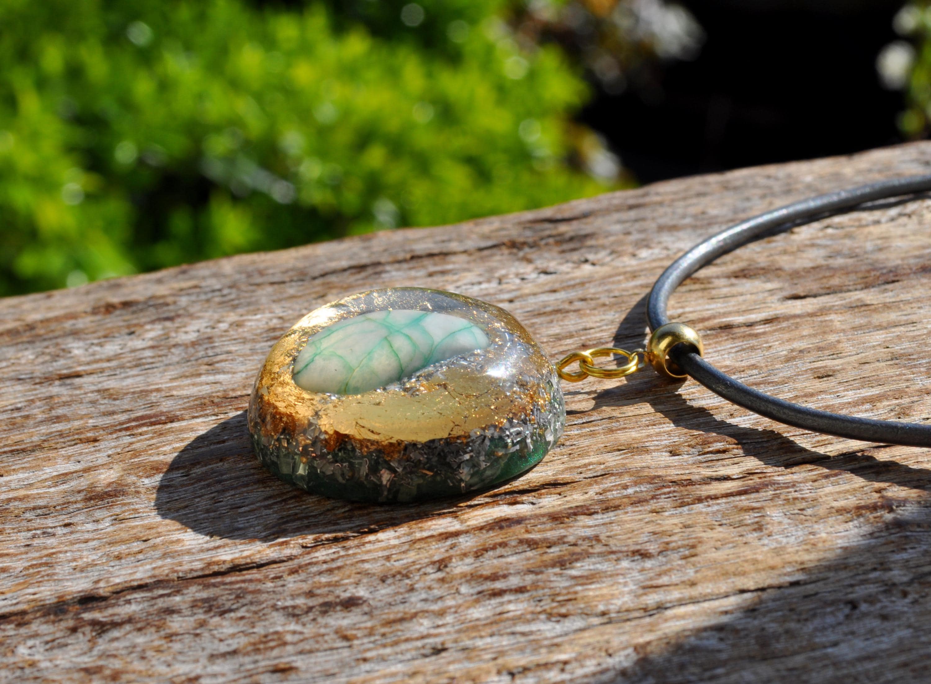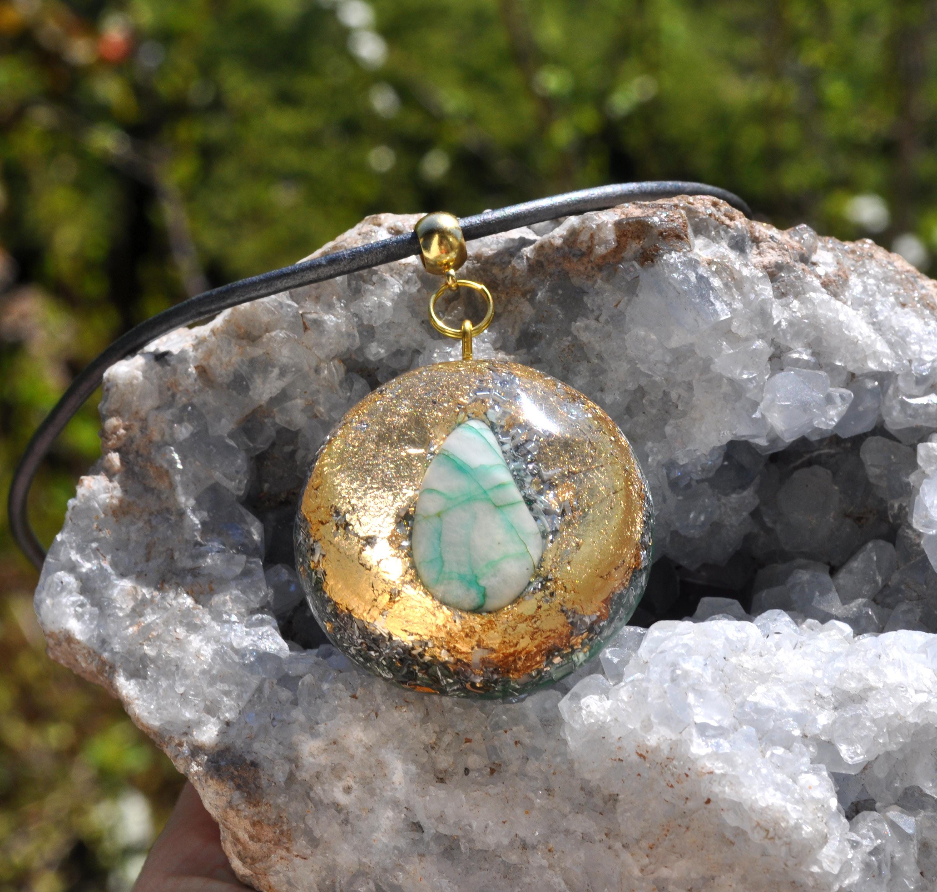 Because each piece is a one-of-a-kind handmade orgone pendant, slight artistic imperfections may be present. It comes on an adjustable cord.