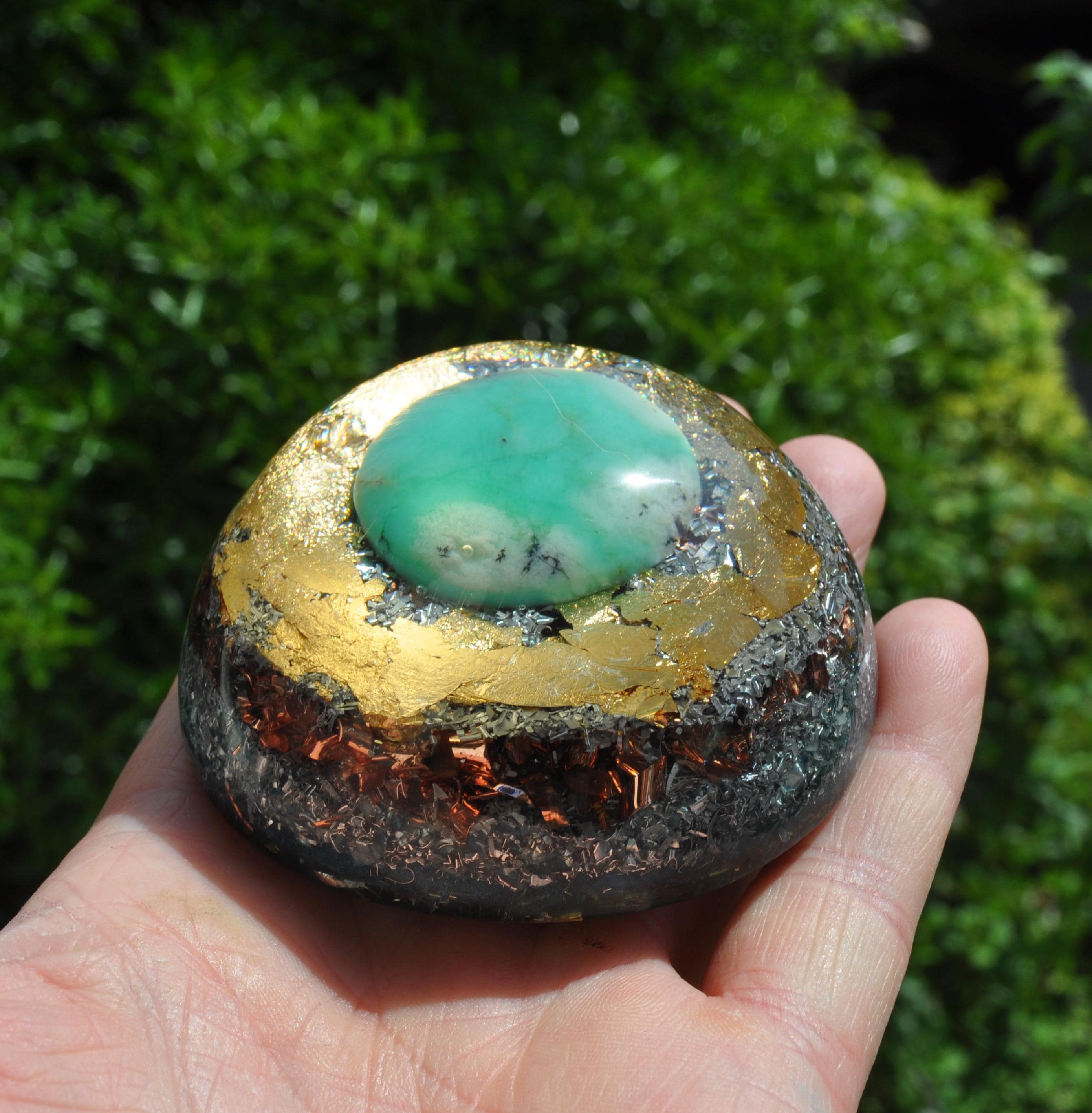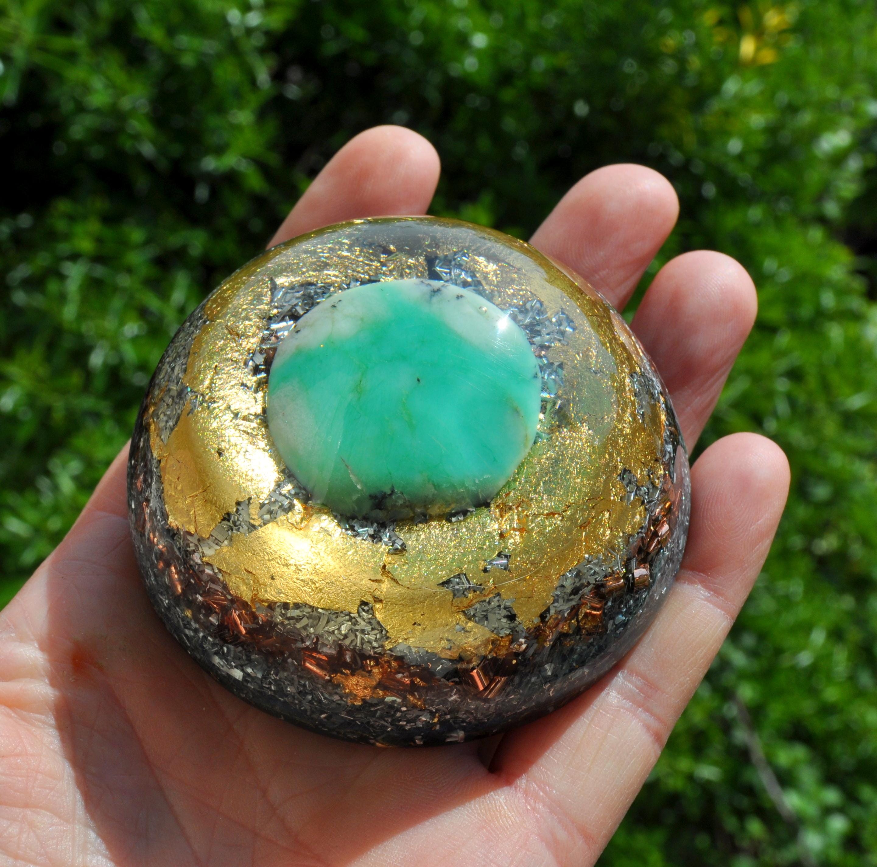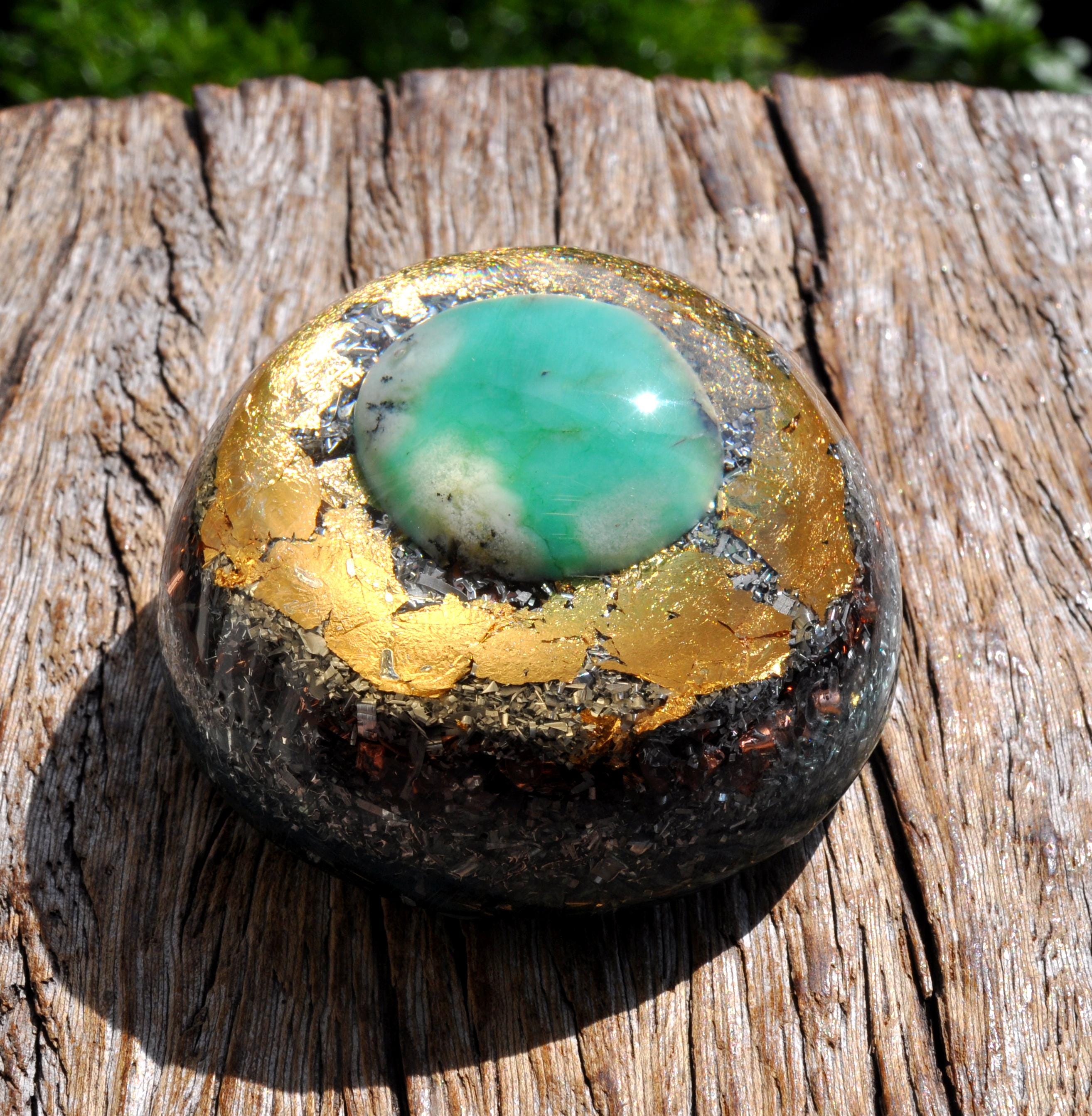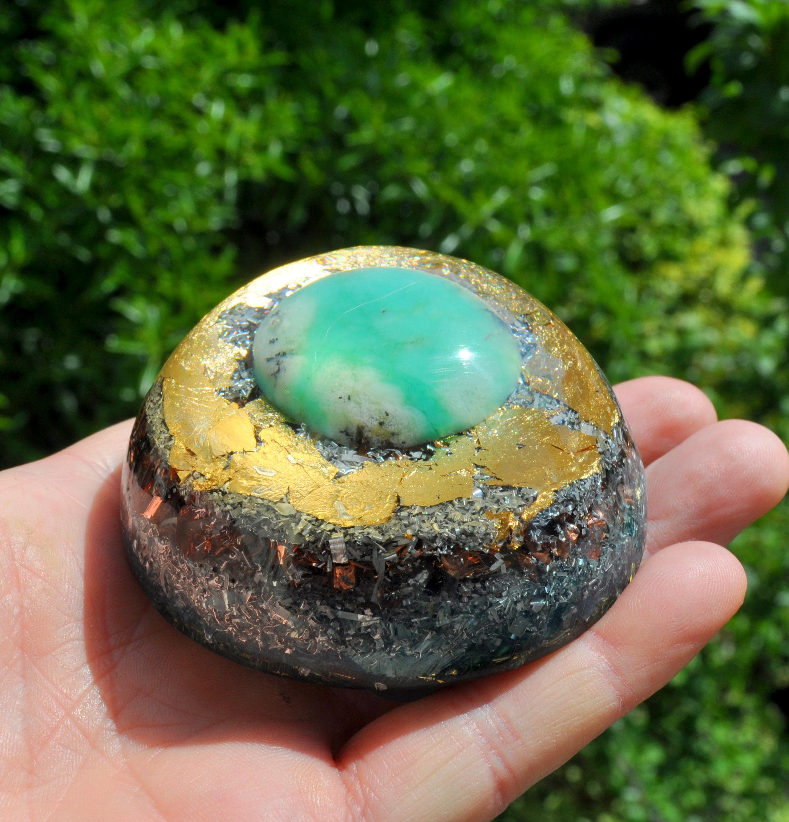 ✨ Chrysoprase Orgone Generator® Dome – Handmade Crystal Orgonite ✨