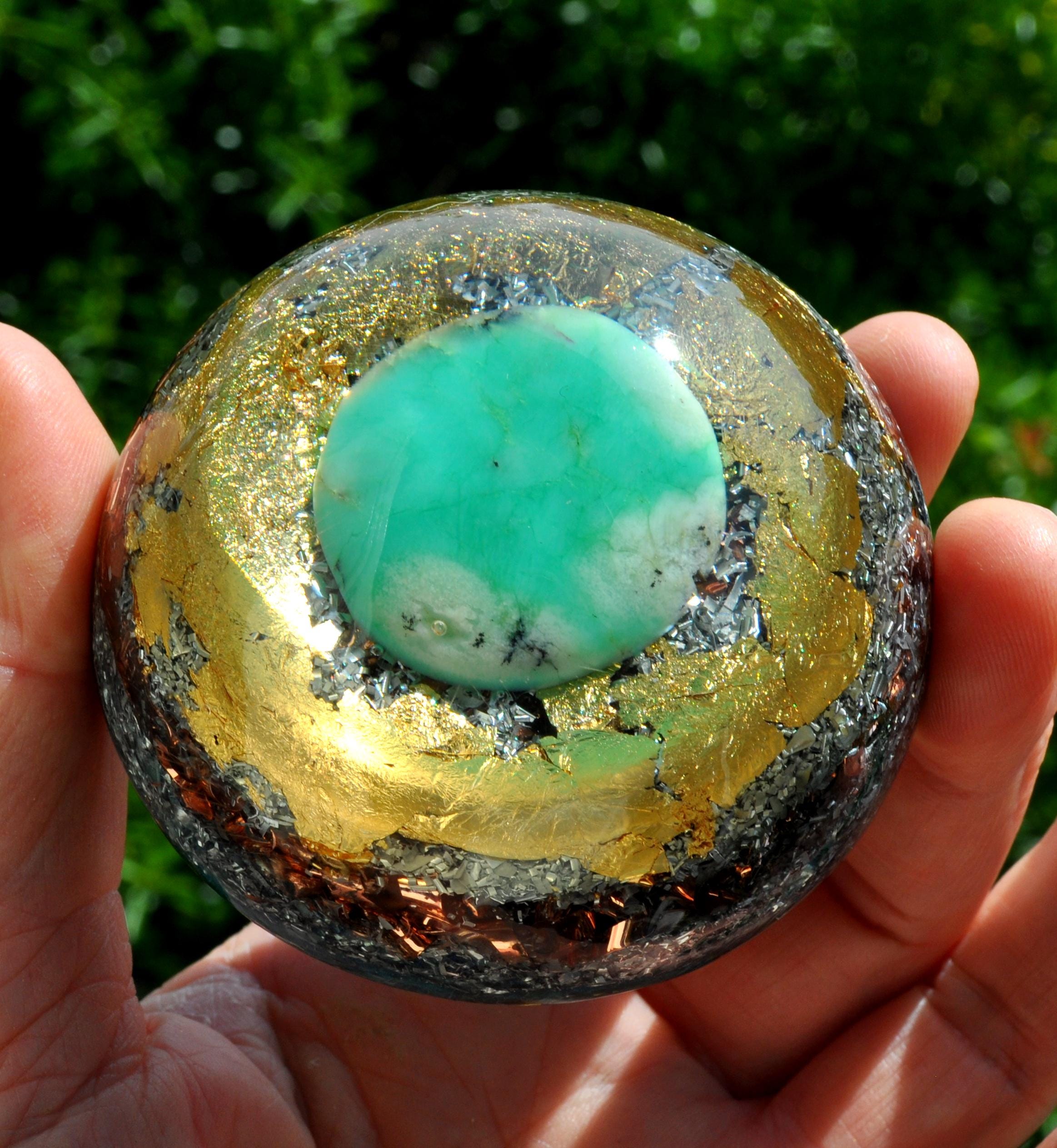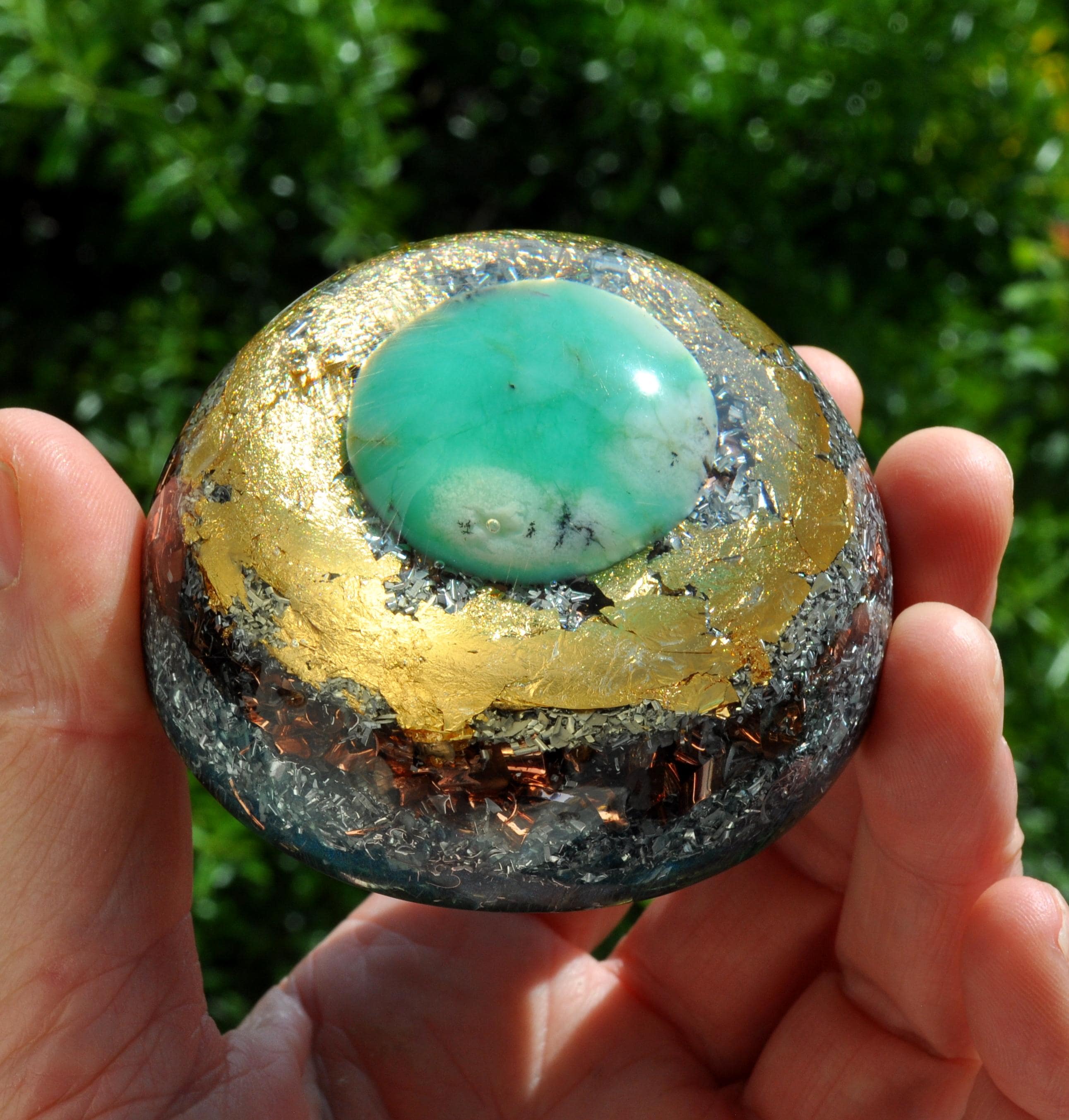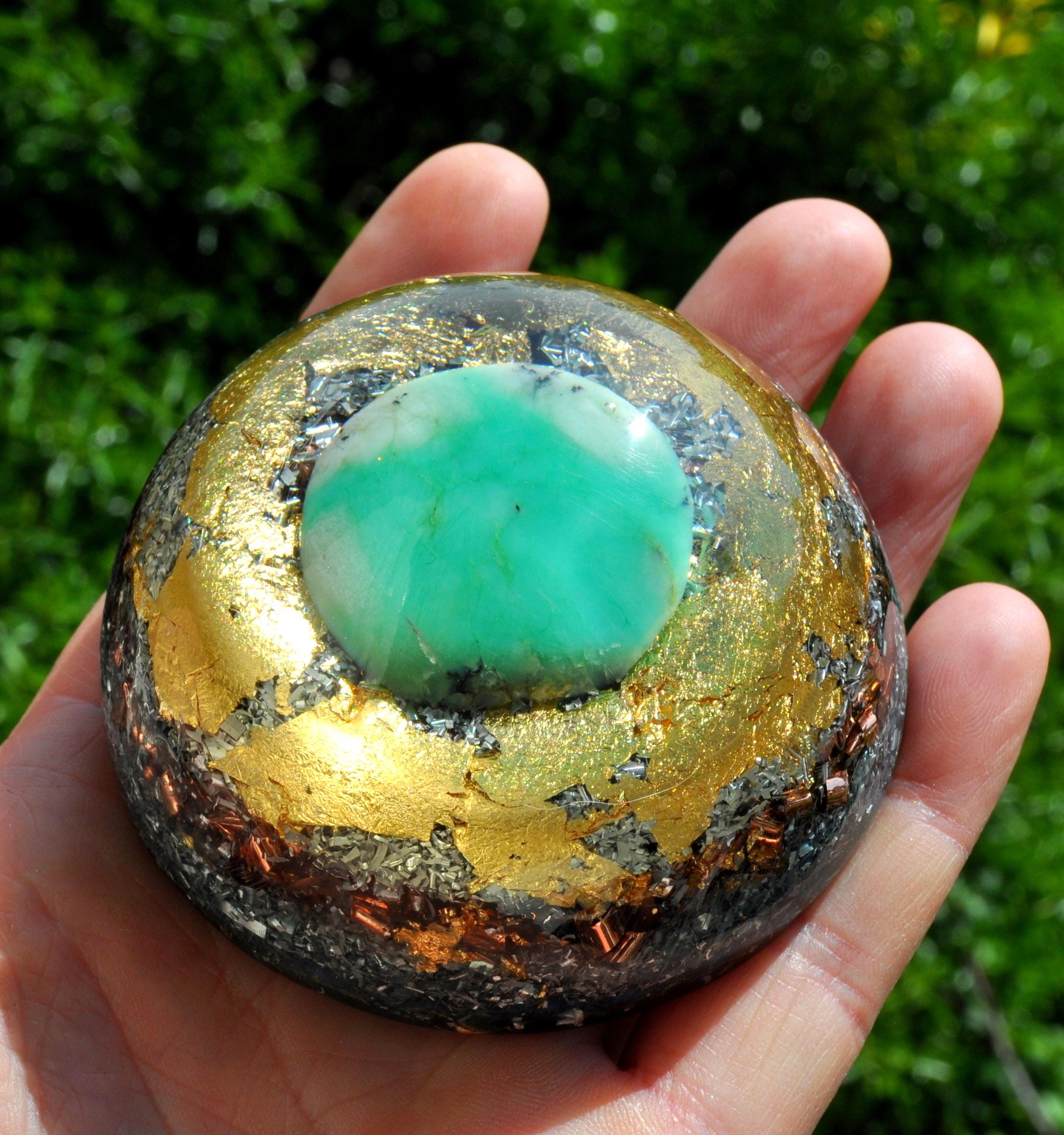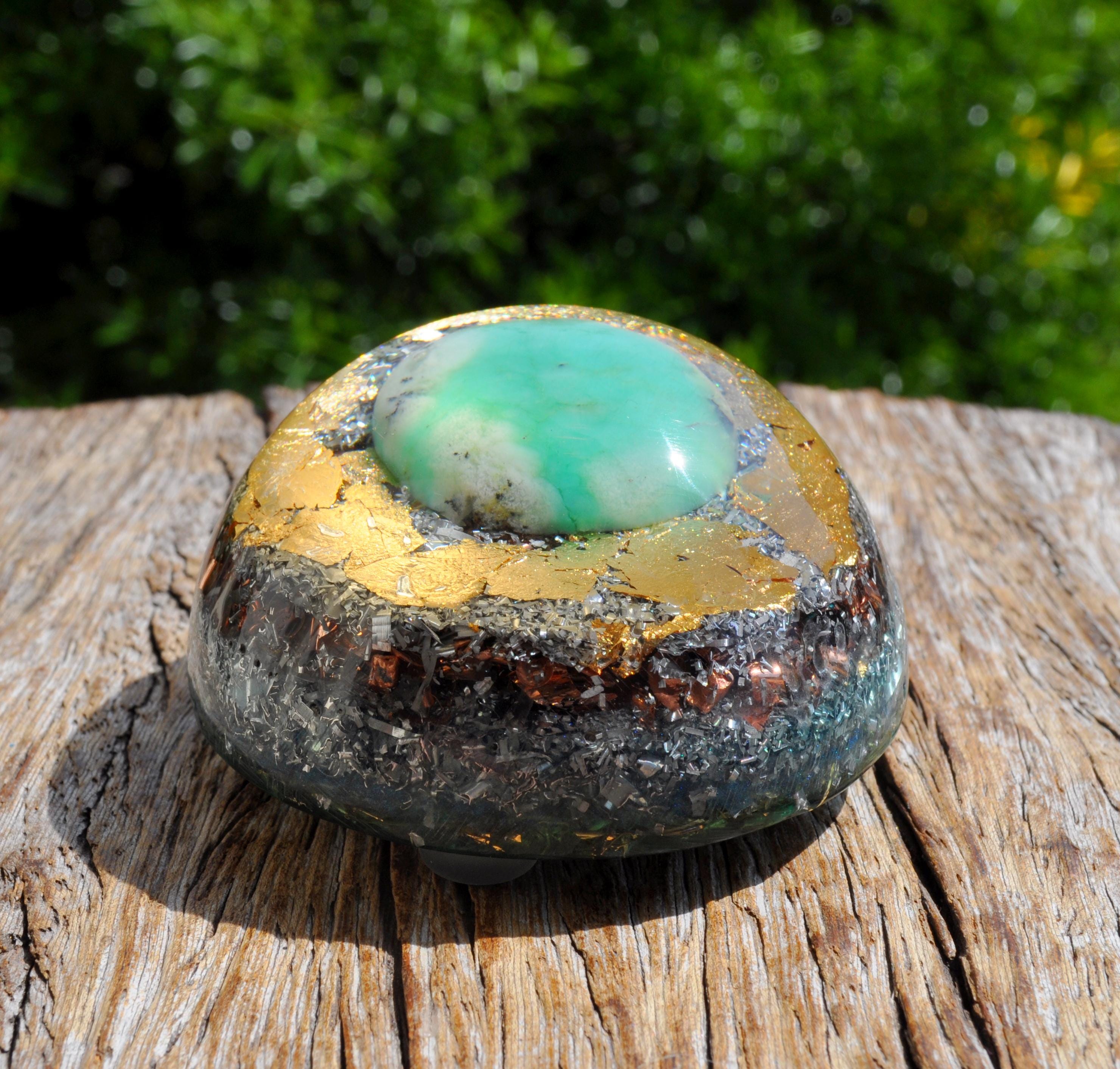 ✨ Chrysoprase Orgone Generator® Dome – Handmade Crystal Orgonite ✨