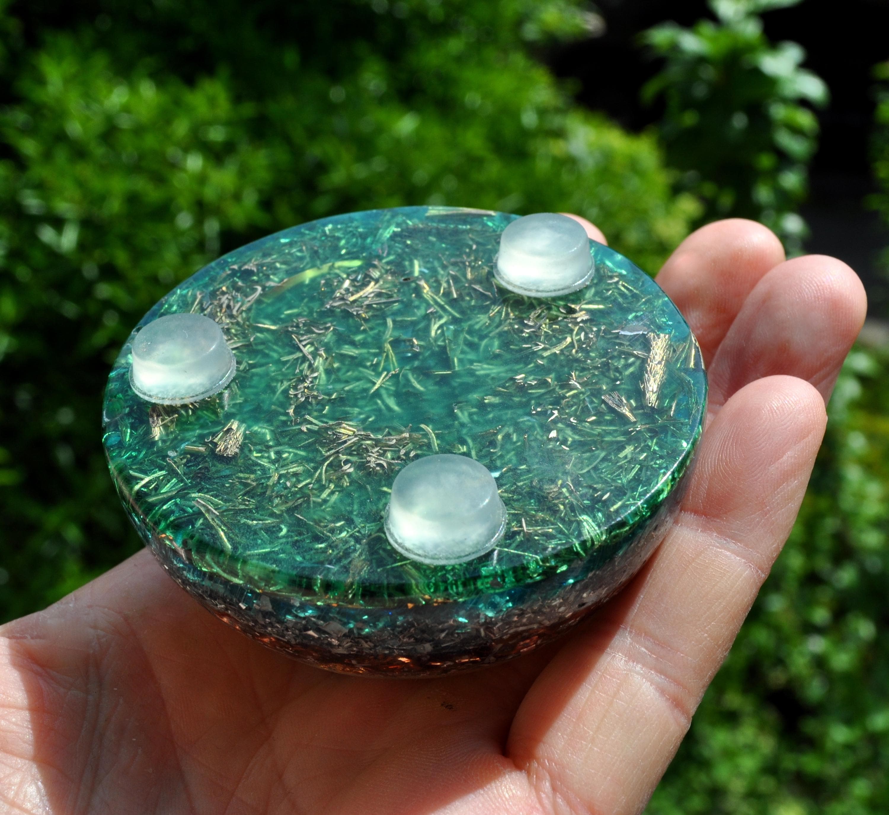 Orgonite® is a composite material made from resin, metals, and quartz crystals, inspired by the work of Dr. Wilhelm Reich and later developed by Karl Hans Welz. It is commonly used in spiritual and decorative contexts as a symbolic object representing balance, intention, and energetic harmony.