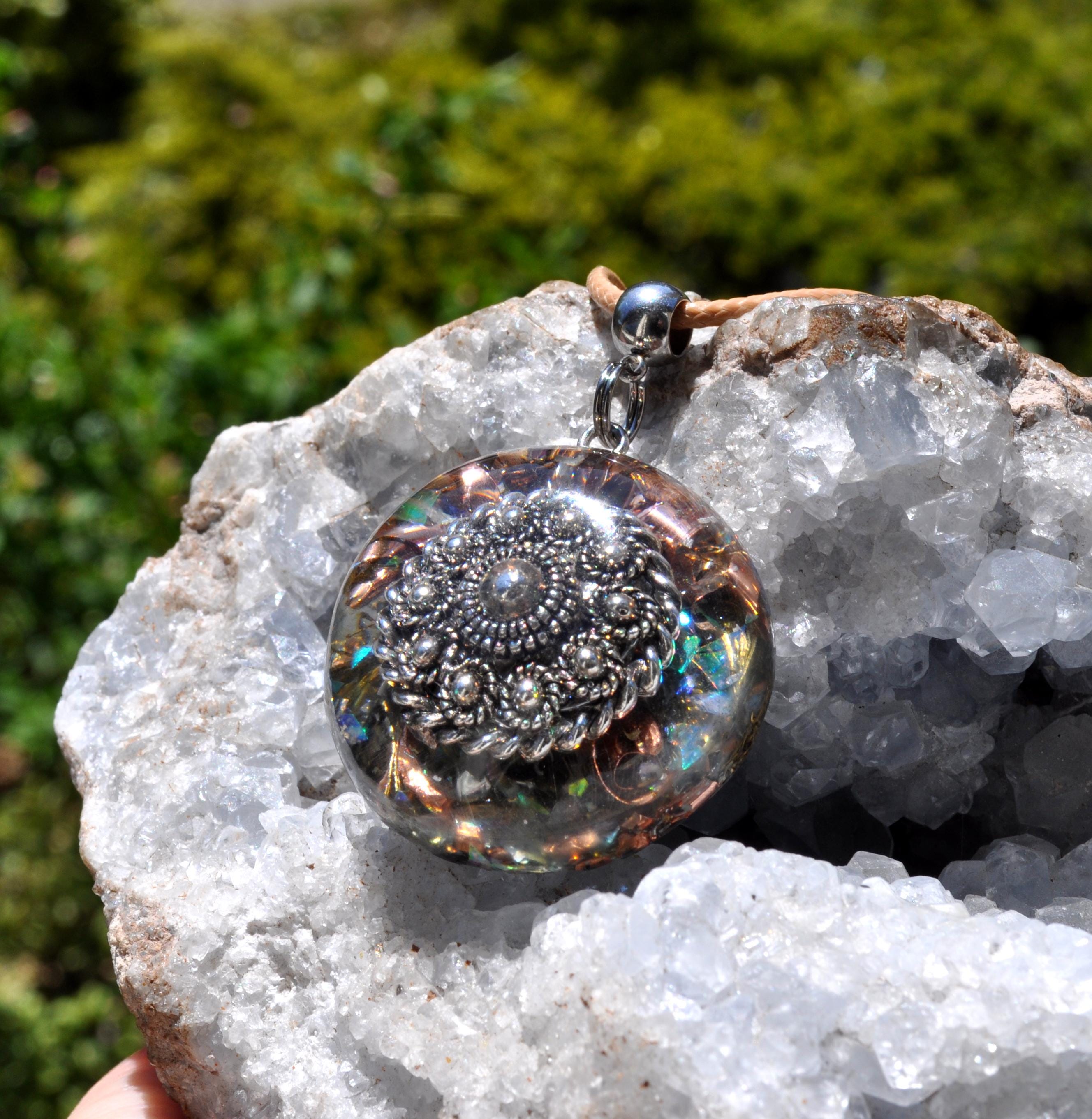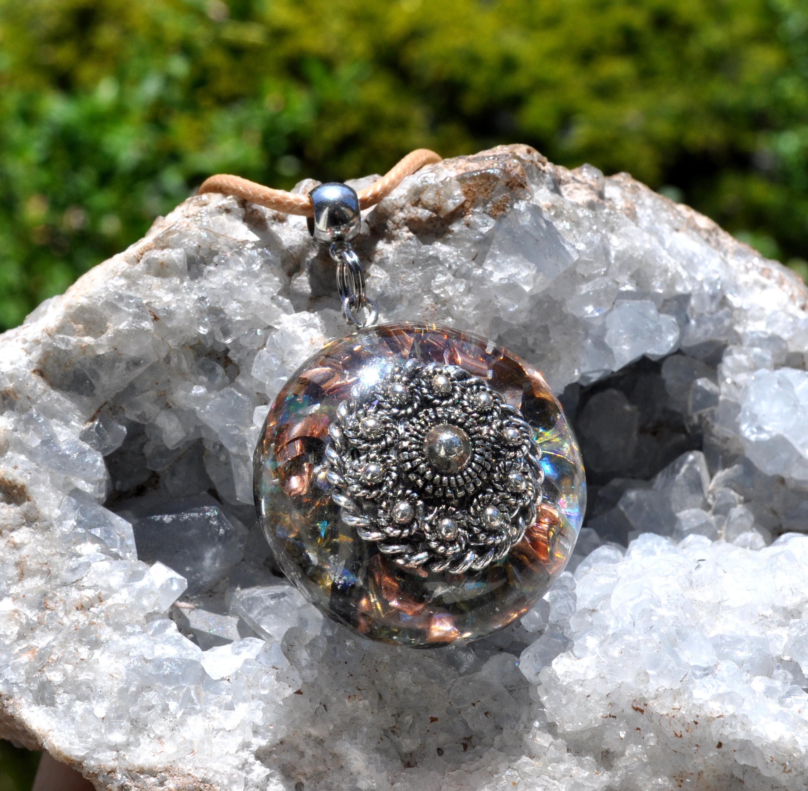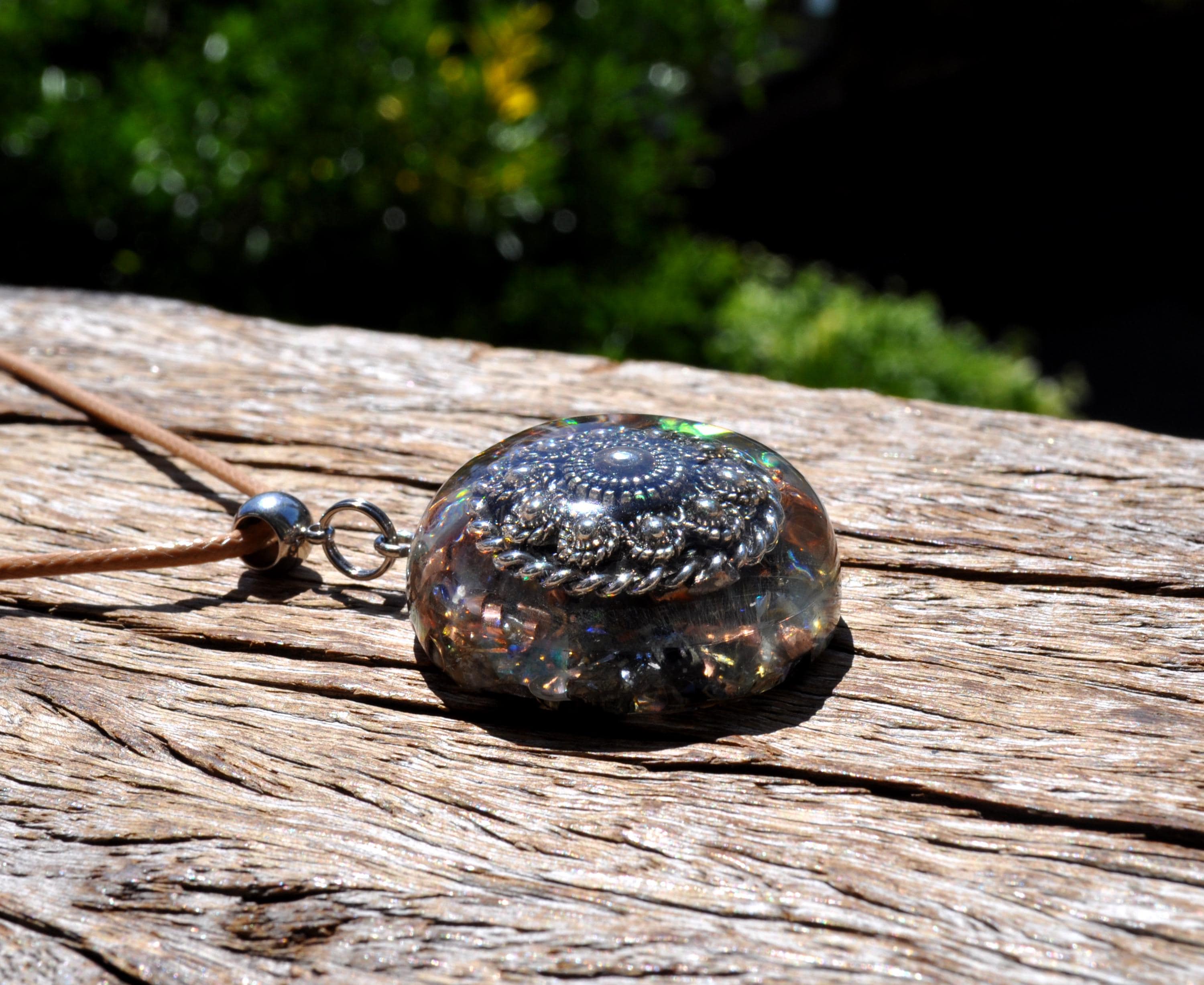 While some people believe orgonite may support energetic balance or help with environmental influences like EMFs, these effects are not scientifically proven. This pendant is best appreciated as a symbolic and decorative piece that can support your personal intentions and sense of well-being.