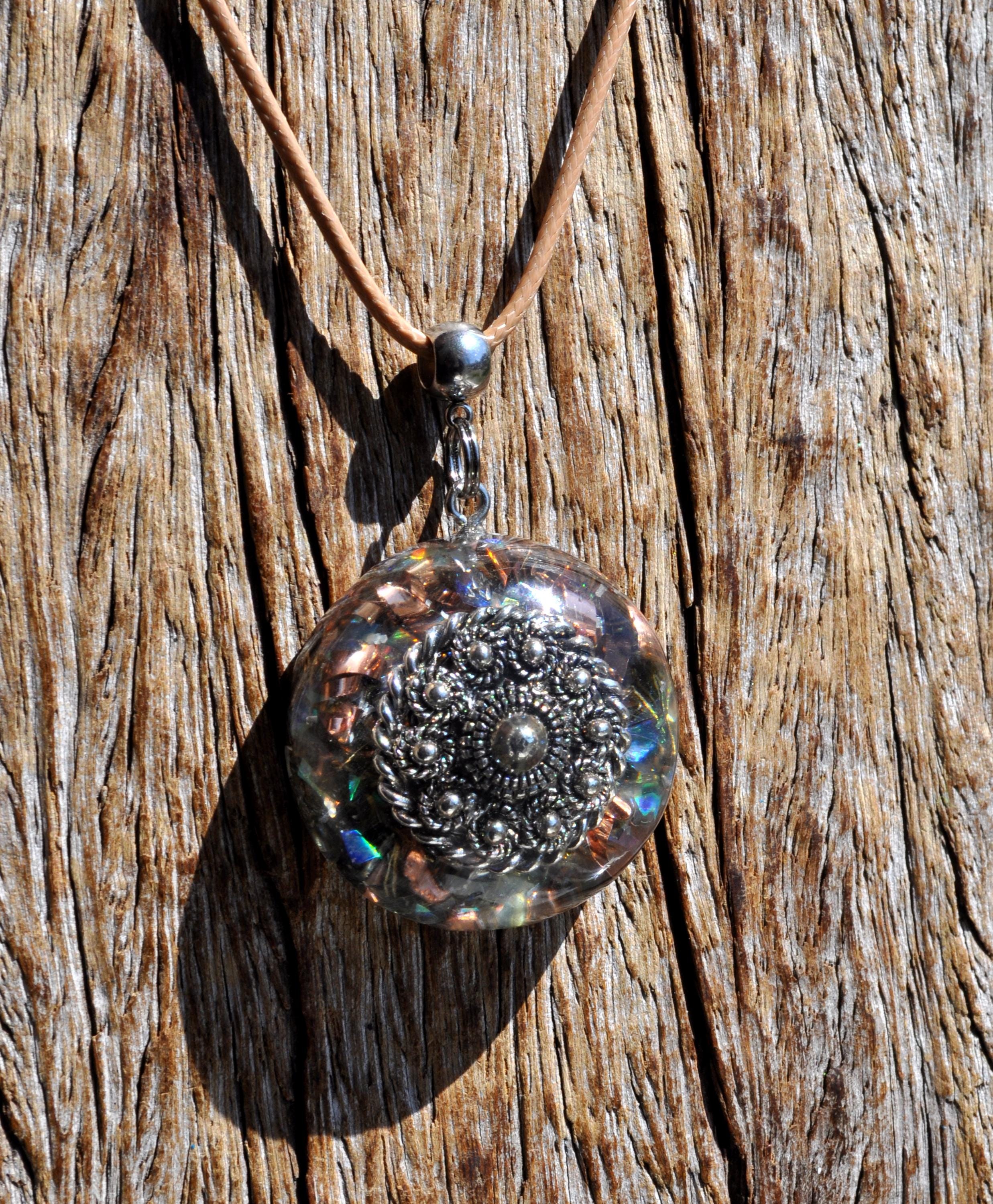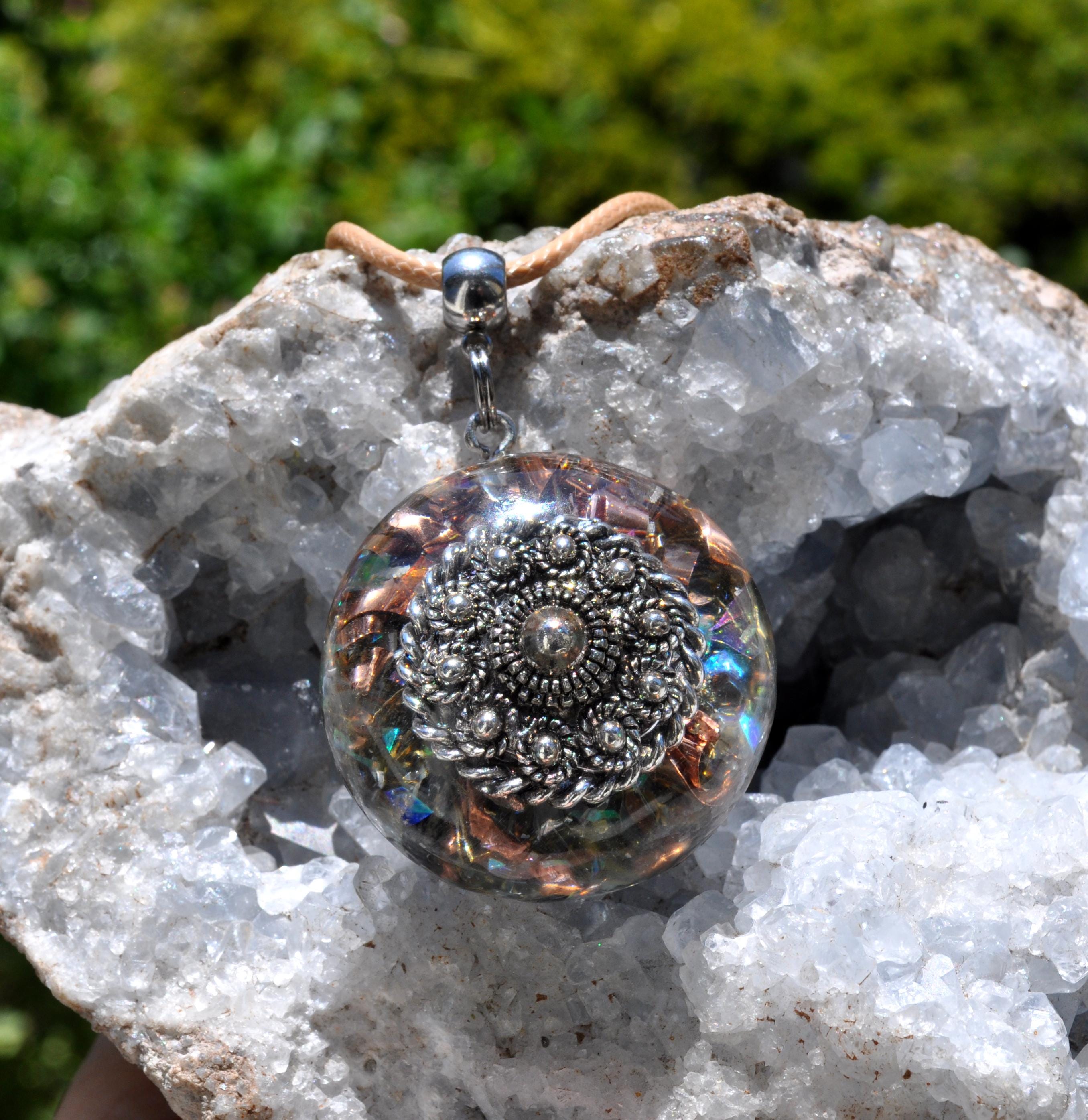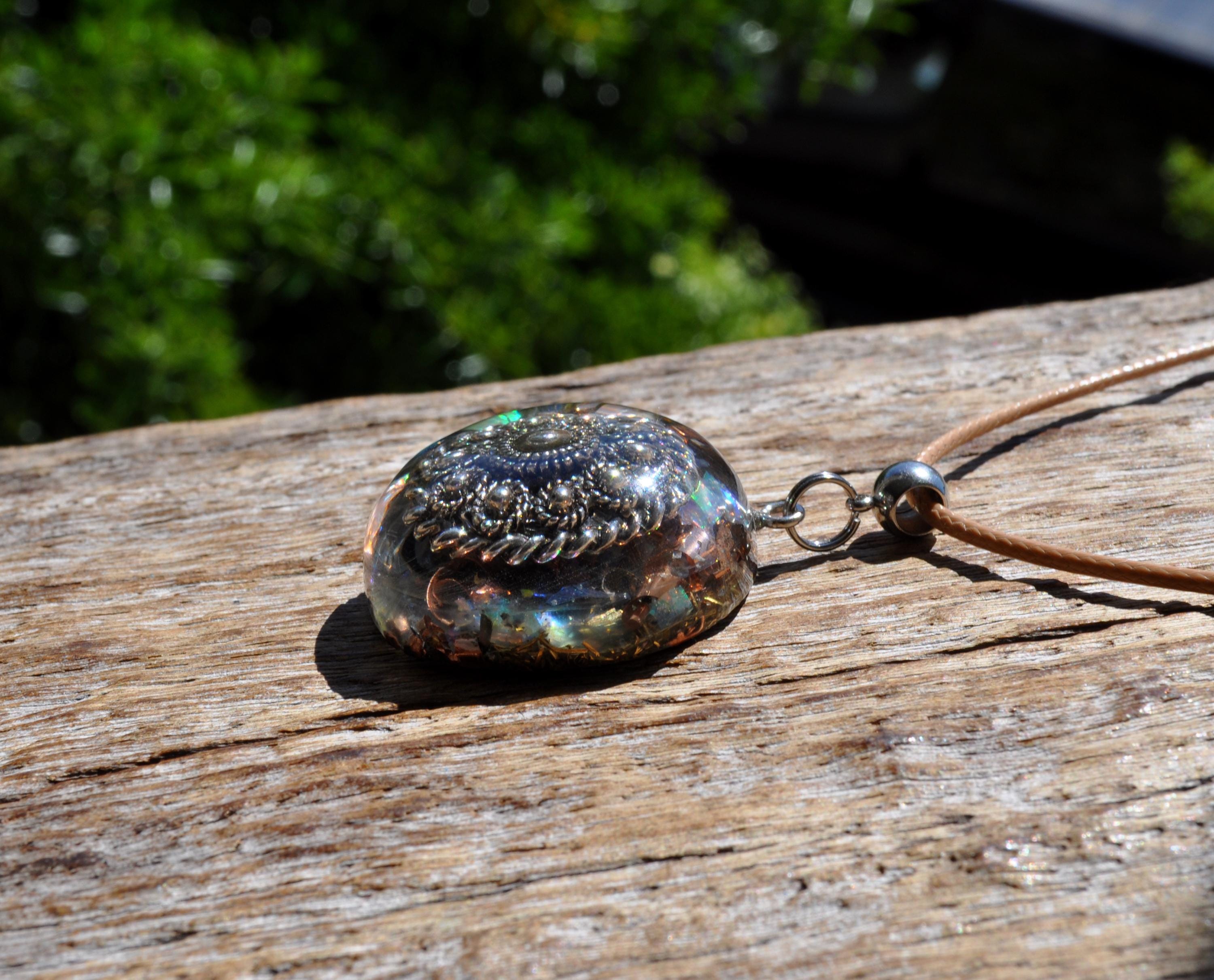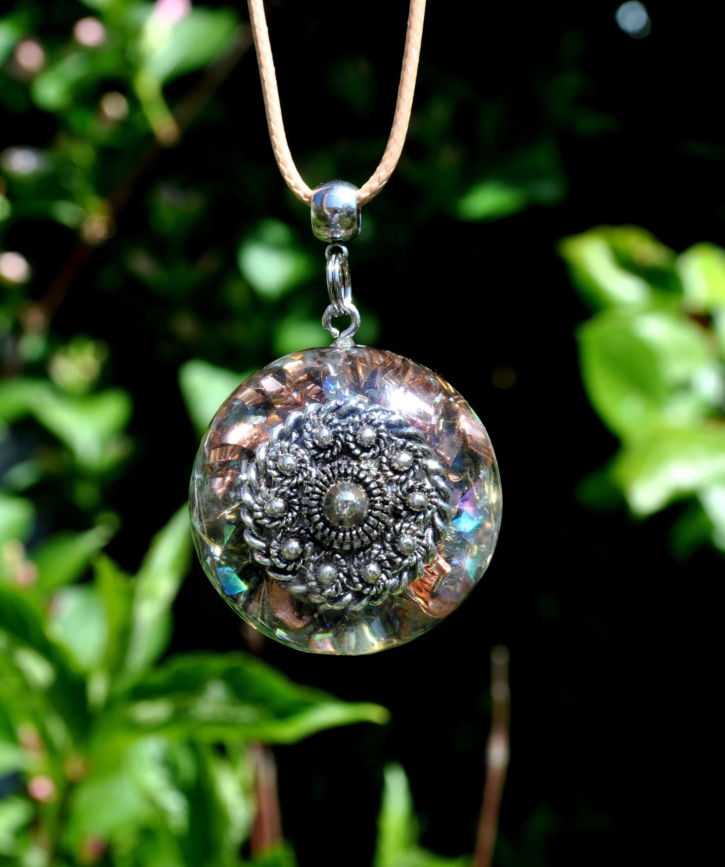 While some people believe orgonite may support energetic balance or help with environmental influences like EMFs, these effects are not scientifically proven. This pendant is best appreciated as a symbolic and decorative piece that can support your personal intentions and sense of well-being.